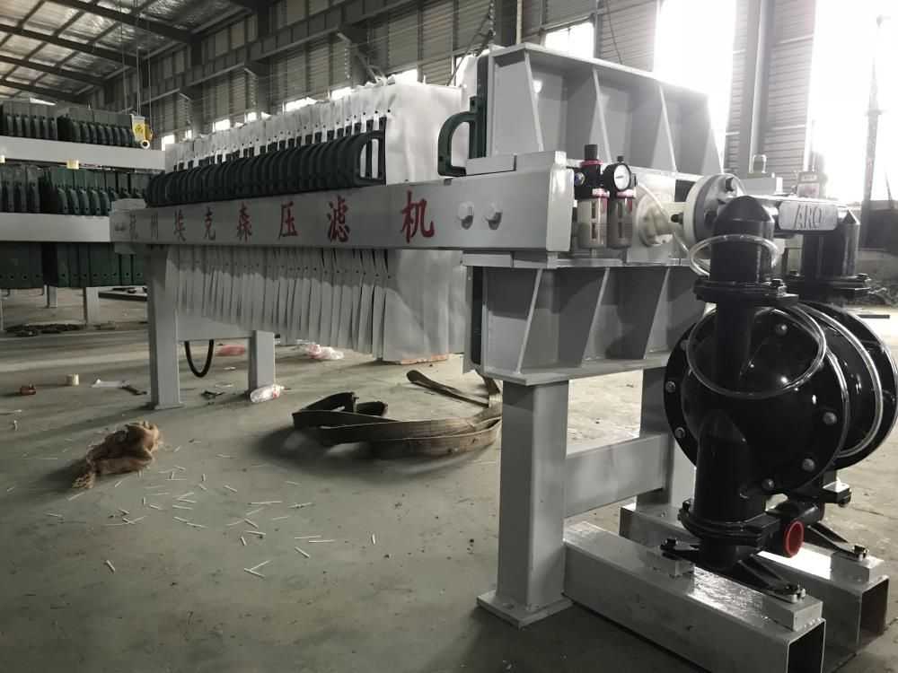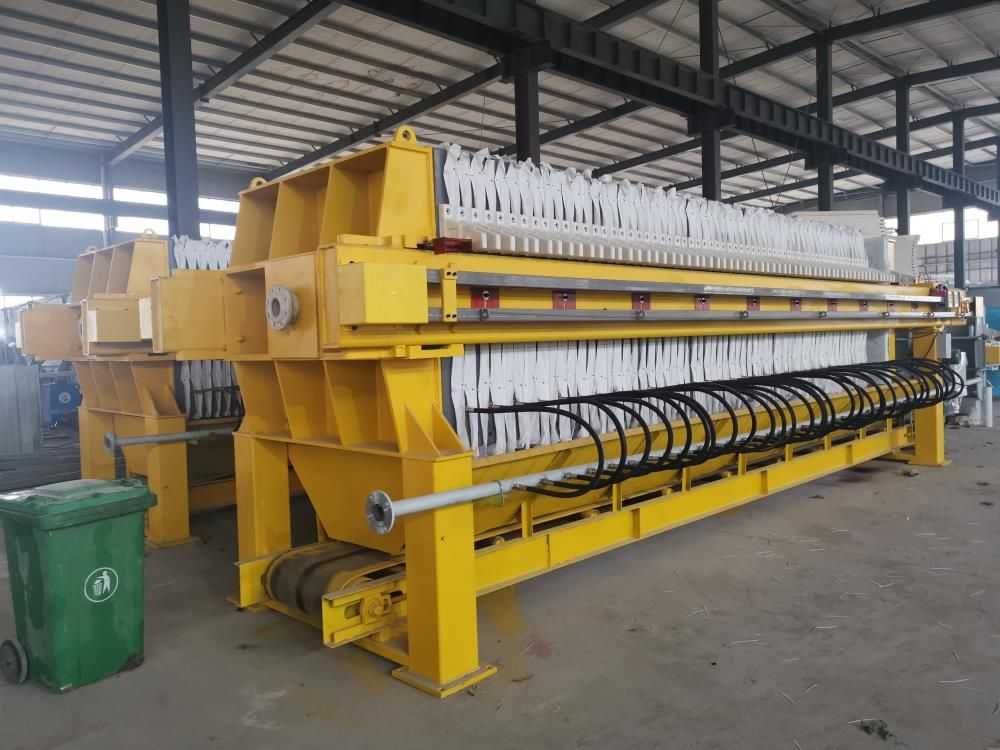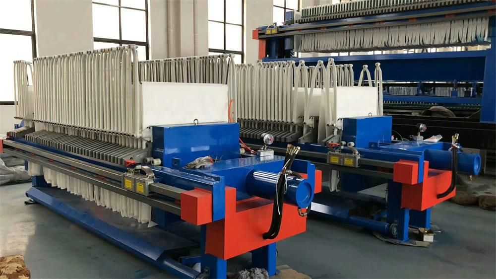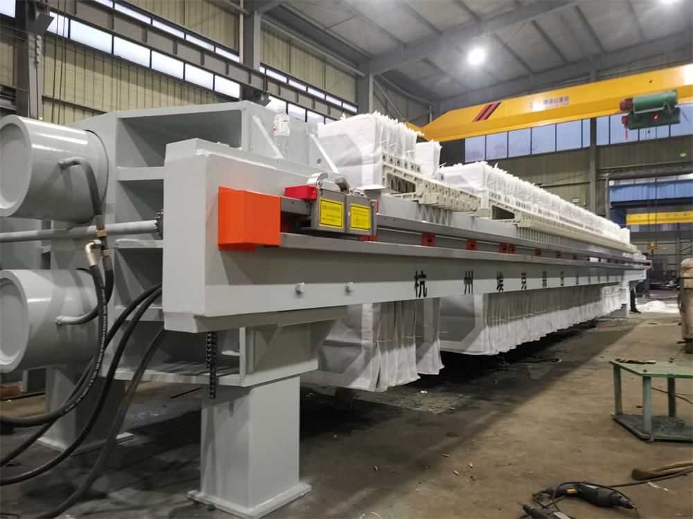 隔膜壓濾機(jī)和常規(guī)箱式壓濾機(jī)的主要區(qū)別在于,在濾板的兩側(cè)都增加了兩個(gè)彈性膜(復(fù)合橡膠膜是一個(gè)整體式膜。在操作期間,當(dāng)進(jìn)料完成時(shí),將高壓流體介質(zhì)注入膜中,并使整個(gè)膜膨脹以過濾濾餅,以進(jìn)一步使濾餅脫水,這是壓力過濾。在隔膜壓濾機(jī)運(yùn)行期間,液壓系統(tǒng)使用液壓油作為壓力載體來傳遞內(nèi)部壓力。